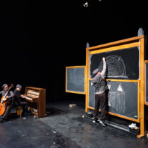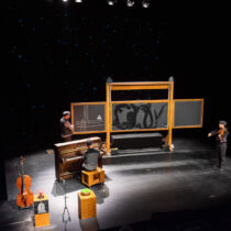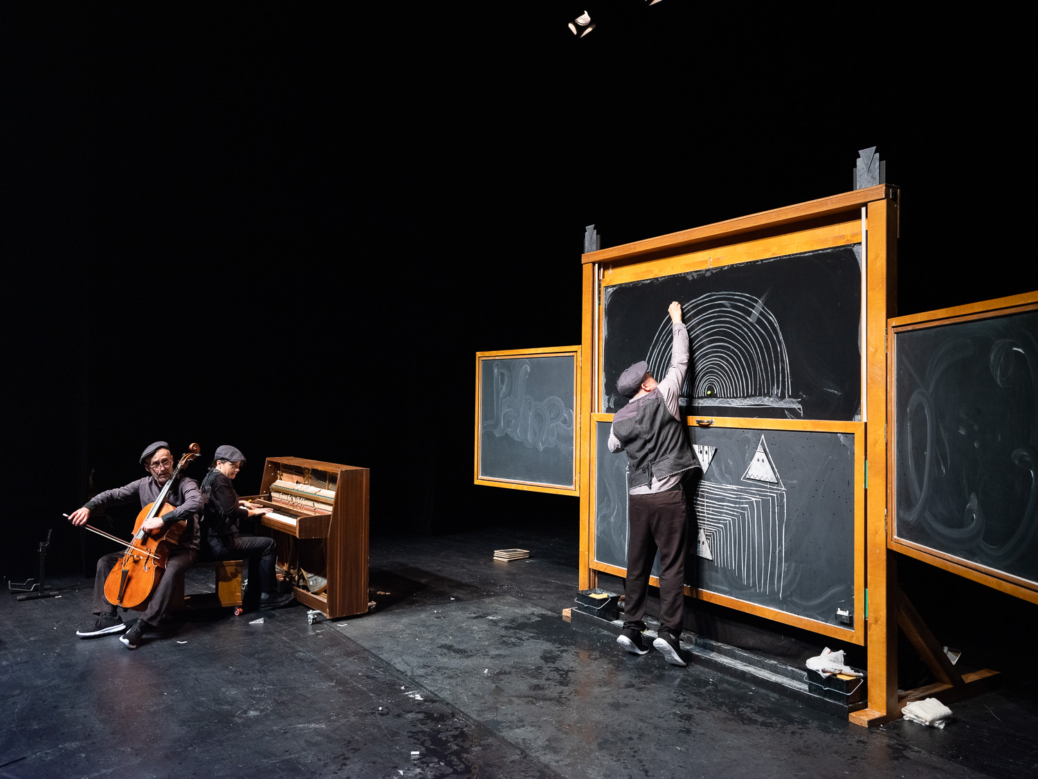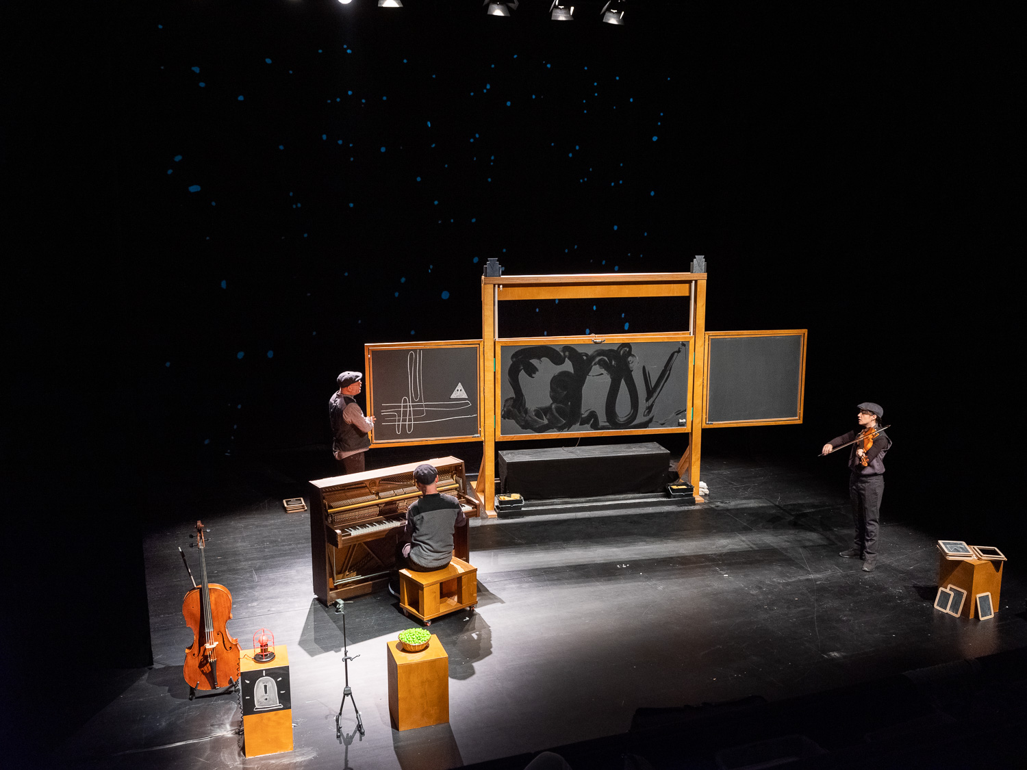 Michel Boulanger (violoncelle, piano), Eleonora Savini (violon, piano, voix), Dan Tanson (conte & dessins)